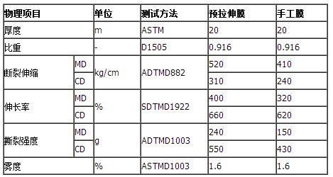 纏繞拉伸膜技術參數: